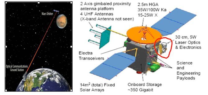 NASA于2003年開始執(zhí)行火星激光通信驗證(MARS Laser CommunicationDemonstration,MLCD)項目,目的是提供深空光學鏈路的早期經(jīng)驗。該項目由NASA/哥達德航天飛行中心(GSFC)管理,其星上子系統(tǒng)由麻省理工學院(MIT)林肯實驗室(LL)研制,而地面子系統(tǒng)則由JPL和MIT-LL共同研制。星上終端計劃在火星通信軌道器(MTO)上進行飛行試驗,該任務(wù)原定于2009年10月發(fā)射。MLCD項目于2004年10月成功完成了系統(tǒng)要求評審,又于2005年3-5月完成了星上終端與地面終端的初步設(shè)計評審。后來由于NASA內(nèi)部的計劃變更,中止了MLCD項目。但是在MLCD項目進行期間,深空光學通信要求的定義和設(shè)計是非常先進的,該項目對于來自空間的波束穩(wěn)定化和在地面上的有效光子計算與日間操作等各項關(guān)鍵技術(shù)都進行了開發(fā)。