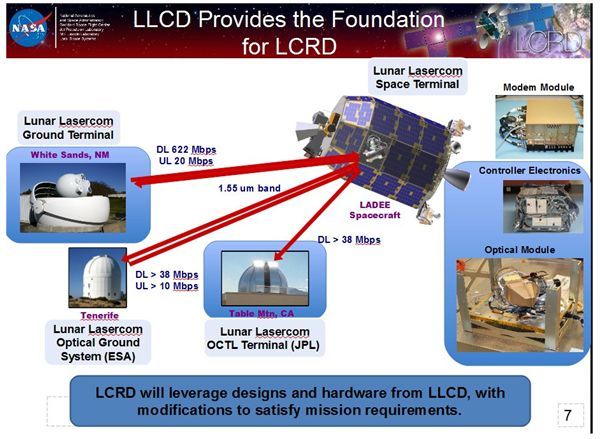 LLCD試驗有三個地面接收系統(tǒng),分別是MIT研制的LLGT(位于新墨西哥White Sands),JPL設(shè)計的OCTL(位于加州),ESA的LLOGS(位于西班牙Tenerife島)。