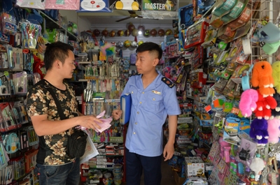 “我們會采取逐一排查、商家自查等多種檢查方式,在兒童玩具中水晶泥、水槍彈、激光筆等都是檢查范圍,一定杜絕‘三無產(chǎn)品’。”樊丹青解釋,一旦發(fā)現(xiàn)“三無產(chǎn)品”,第一次是依據(jù)相關(guān)法律法規(guī)向商家開具《責(zé)令改正通知書》,第二次再發(fā)現(xiàn)則依照相關(guān)法規(guī)進行處罰。