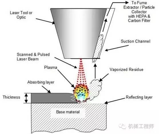 a)激光器發(fā)射的光束被需處理表面上的污染層所吸收。