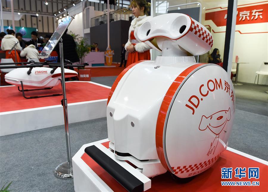 12月6日,倉(cāng)庫(kù)巡邏機(jī)器人在2017世界智能制造大會(huì)展示區(qū)京東展位進(jìn)行展示。