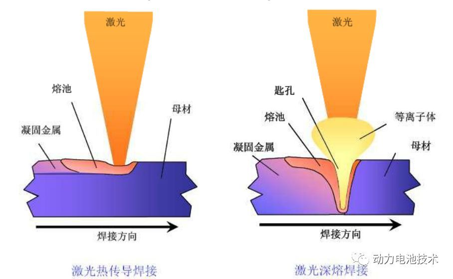 激光焊接是目前高端電池焊接推崇的主要方法。激光焊接是高能束激光照射工件,使工作溫度急劇升高,工件熔化并重新連接形成永久連接的過(guò)程。激光焊接的剪切強(qiáng)度和抗撕裂強(qiáng)度都比較好。電池焊接的好壞其導(dǎo)電性、強(qiáng)度、氣密性、金屬疲勞和耐腐蝕性能是典型的焊接質(zhì)量評(píng)價(jià)標(biāo)準(zhǔn)。