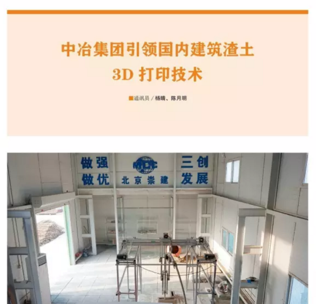 近日,北京崇建公司自主編制的首個建筑渣土3D打印系統(tǒng)制造工藝企業(yè)標準正式發(fā)布,標志著北京崇建公司建筑渣土3D打印系統(tǒng)產(chǎn)品規(guī)范化管理進入標準化時代,引領了建筑渣土3D打印技術的發(fā)展方向,為建筑渣土3D打印產(chǎn)業(yè)化發(fā)展提供強有力的技術支持,實現(xiàn)了自主創(chuàng)新的歷史性飛越,彰顯出中冶人敢為人先的創(chuàng)新拼搏精神和用心鑄造世界的勇氣,開創(chuàng)了建筑業(yè)綠色發(fā)展新紀元!
