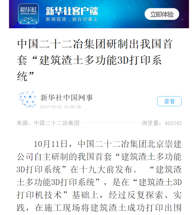 原標題:全球首個建筑渣土3D打印系統(tǒng)制造工藝企業(yè)標準發(fā)布  近日,北京崇建公司自主編制的首個建筑渣土3D打印系統(tǒng)制造工藝企業(yè)