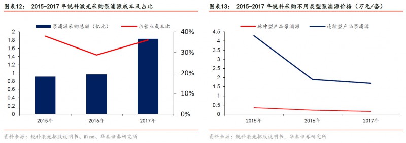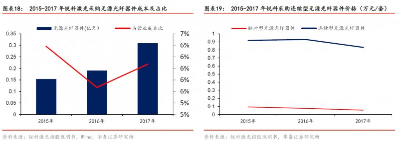 從國外龍頭公司情況來看,整合元器件產(chǎn)業(yè)鏈可以帶來較高毛利率。國內(nèi)廠商目前毛利率水平較高,但增益介質(zhì)、激光芯片和光纖光柵仍依賴于進(jìn)口,核心元器件若進(jìn)一步國產(chǎn)化有望為業(yè)績提供充足支撐。