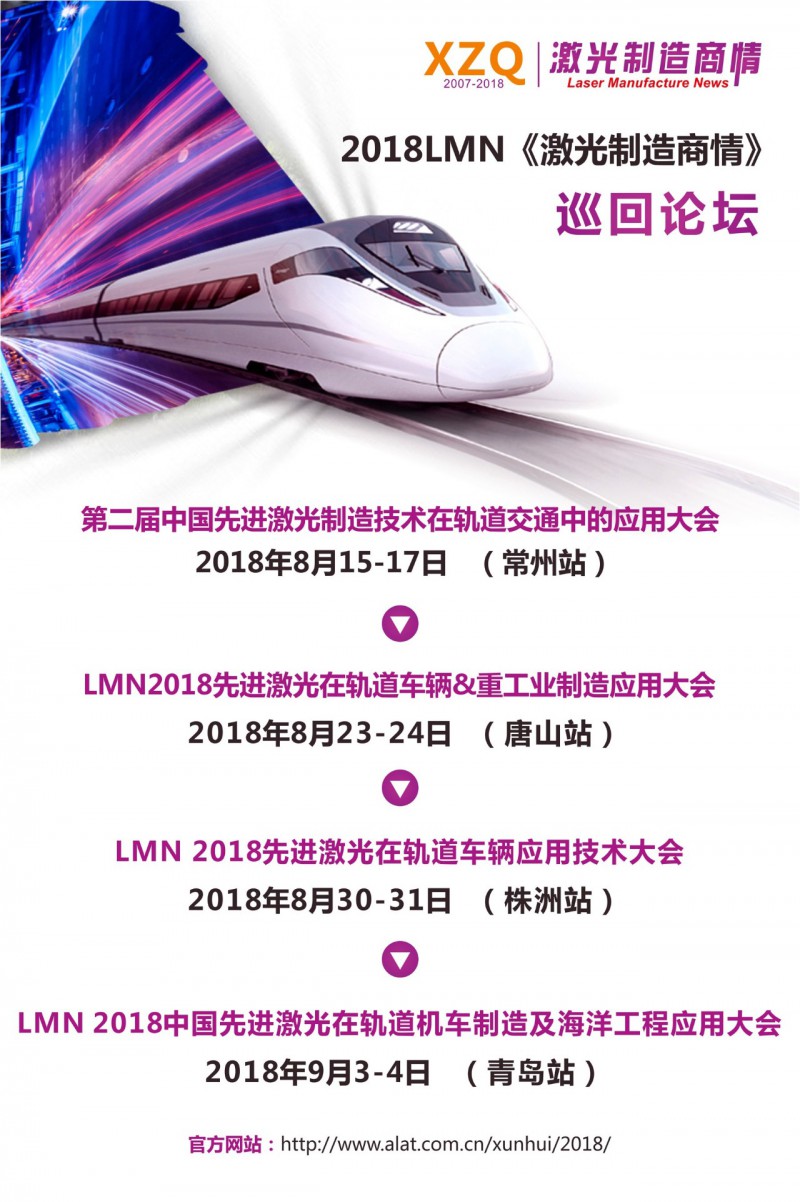 由中國激光產業(yè)社團聯(lián)盟、唐山市科學技術局、廣東省激光行業(yè)協(xié)會主辦,中國科學院唐山高新技術研究與轉化中心、深圳市激光智能制造行業(yè)協(xié)會、激光制造商情承辦的“LMN2018先進激光在軌道車輛&重工業(yè)制造應用大會”,將于:2018年8月23-24日在唐山舉辦。會議圍繞智能激光在軌道交通制造行業(yè)中的應用及挑戰(zhàn),激光綜合解決方案在工業(yè)制造行業(yè)中的應用,高功率激光在冶金、礦產行業(yè)中的應用進行專題研究。中國科學院姚建銓院士、哈爾濱工業(yè)大學國防科技工業(yè)焊接自動化中心雷正龍副主任、中國科學院力學研究所激光毛化中心李正陽教授…等專家將出席會議,并做精彩演講!