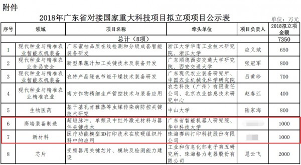 2018年廣東省對(duì)接國(guó)家重大科技項(xiàng)目,激光和3D打印項(xiàng)目各獲得1000萬(wàn)資金