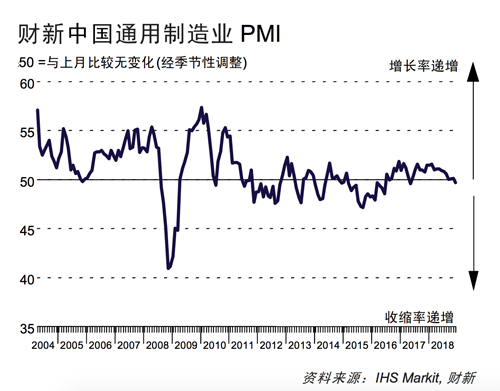 2018年12月財(cái)新中國(guó)制造業(yè)PMI降至49.7