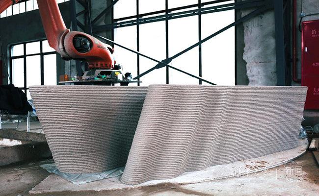 1月12日,清華大學(建筑學院)-中南置地數(shù)字建筑研究中心徐衛(wèi)國教授團隊運用自主研發(fā)的機器臂3D打印混凝土技術,在上海寶山智慧
