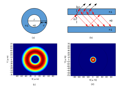 圖1  示意圖(a)光波導(dǎo)結(jié)構(gòu),(b)光傳輸路徑;模場(chǎng)