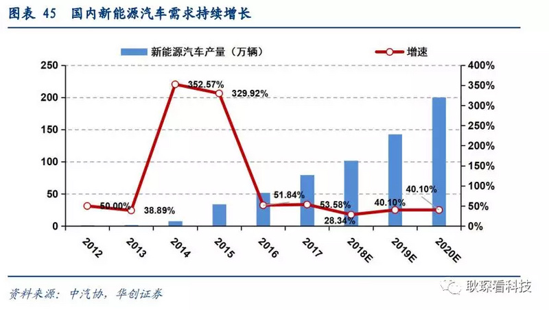 當前國內(nèi)新能源汽車普及趨勢確定性較大。我國新能源汽車總體發(fā)展態(tài)勢良好,盡管補貼力度減弱,但并沒有造成較大影響。根據(jù)中汽協(xié)估計,2018年新能源汽車銷量將超過100萬輛,增速在40%左右,繼續(xù)保持較高的增長態(tài)勢。