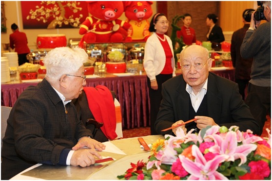 3、金國藩院士(左)夫人段淑貞教授(右)在團(tuán)拜上。