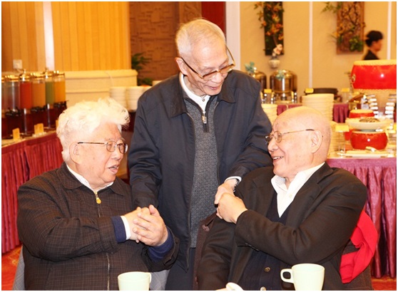11、周立偉院士(左)、王啟明院士(中)和金國藩院士(右)在團(tuán)拜會(huì)上親切見面。