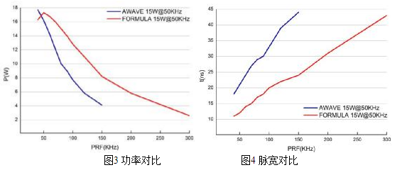 1.頻率更高。最高頻率可達300K,在200K時最大功率有5.8W,300K時最大功率有2.6W。與AWAVE 15W@50KHz激光器功率的對比可見圖3。