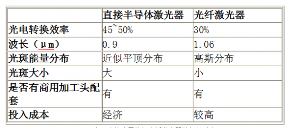 直接半導(dǎo)體與光纖激光器的參數(shù)對(duì)比