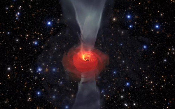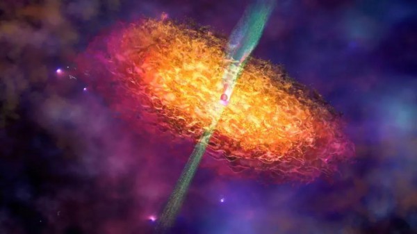 這幅藝術(shù)家的印象描繪了一個黑洞的周圍環(huán)境,顯示了一個由過熱等離子體和相對論射流組成的吸積盤。資料來源:Nicolle R. Fuller/NSF