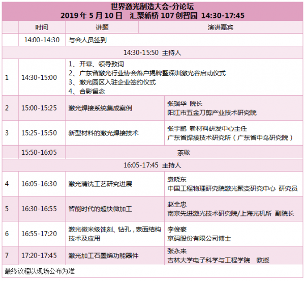 附:LMN2019世界激光制造大會主會場演講嘉賓(2019年5月8日-深圳會展中心)