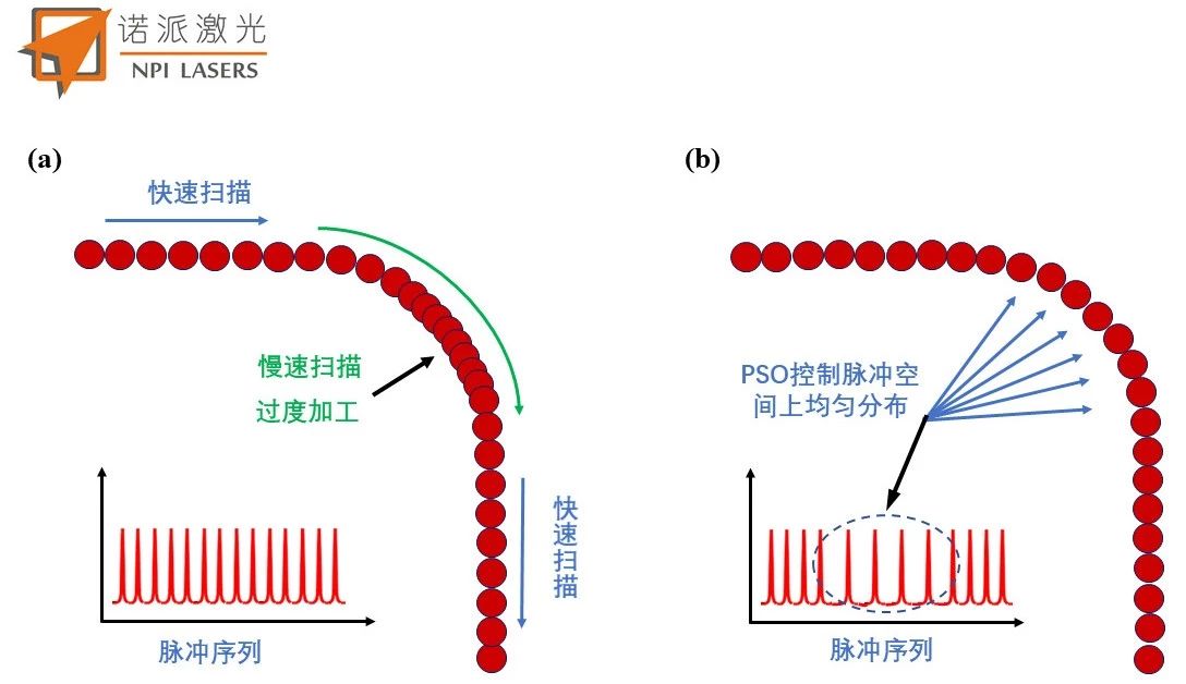 3. 超快脈沖激光移動運動過程中與物質(zhì)相互作用示意圖:(a)不含PSO功能;(b)含PSO功能