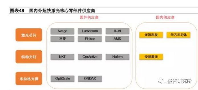 超快激光器的國產(chǎn)化過程與高功率激光器有著很大的相似性,我們認(rèn)為未來3-5年,隨著超快激光應(yīng)用場景不斷成熟落地,有望復(fù)制高功率光纖激光器進(jìn)口替代的道路。
