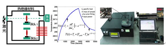 圖四 激光熱度儀用于吸收的測量原理和樣機(jī)圖片