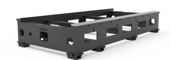 除了光學(xué)上的要求外,還需要設(shè)備擁有超強(qiáng)承重的機(jī)械結(jié)構(gòu),此次切割機(jī)結(jié)構(gòu)配備了邦德自主研發(fā)的鑄鐵床身技術(shù)(圖2),采用最低抗拉強(qiáng)度200MPa 的片狀石墨鑄鐵一體澆鑄成形,含碳量、抗壓強(qiáng)度、減振性以及耐磨性都大幅提高,床身缺口敏感度以及熱敏感度較之前也更低,還具備良好的潤滑性能、耐腐蝕性和尺寸穩(wěn)定性,減少了因床身振動(dòng)帶來的加工誤差,同時(shí)還降低了設(shè)備在使用時(shí)的損耗,穩(wěn)定性較普通焊接床身提高30%,加工精度提升30%,床身精度可保持50 年甚至更長。