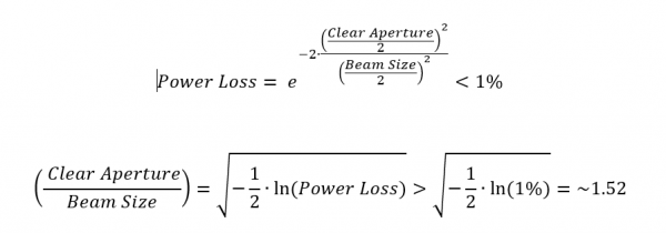通過深入研究數(shù)學方程并使用由1 / e2定義的光束尺寸的典型高斯光束作為示例,我們可以確保由于光束削波導致的功率損耗<1%。見下面的公式: