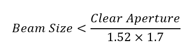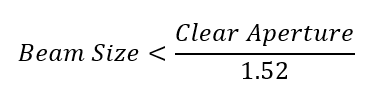 使用高斯光束作為示例,但在這種情況下,光束尺寸在FWHM下定義。為確保光束削波造成的功率損耗<1%,通光孔應至少比1 / e2光束尺寸大1.07倍; 當功耗損失<5%,通光孔應為1.22; 當功率損耗<0.1%,通光孔應為1.86。