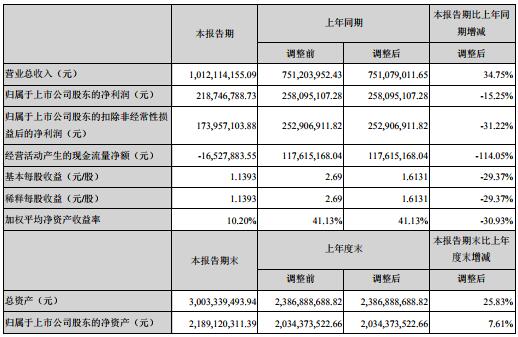 8月25日,銳科激光披露2019年半年度報告,公司實(shí)現(xiàn)營業(yè)總收入10.12億元,同比增長34.75%;歸屬于上市公司股東的凈利潤2.19億元,同比減少15.25%;歸屬于上市公司股東的扣除非經(jīng)常性損益后的凈利潤1.74億元,同比減少31.22%。