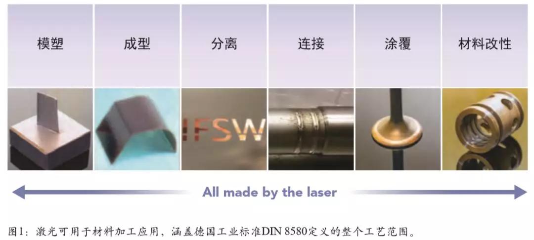 幾十年來,眾所周知,激光是一種非常靈活的材料加工工具,可用于滿足各種制造應(yīng)用,實(shí)際上涵蓋了德國(guó)工業(yè)標(biāo)準(zhǔn)DIN 8580 定義的所有制造工藝。DIN 8580 將工藝 分為模塑、成型、分離、連接,涂覆和改變材料特性(見圖1)。在 1992 年的教科書中,Helmut Hügel 就這樣說道 :“激光在工業(yè)制造中的重要性,在于其在各種加工工藝方面的非凡靈活性,包括切割、燒蝕、鉆孔、焊接、硬化、合金化、重熔,以及眾多材料和不同的工件配置?!?/span>