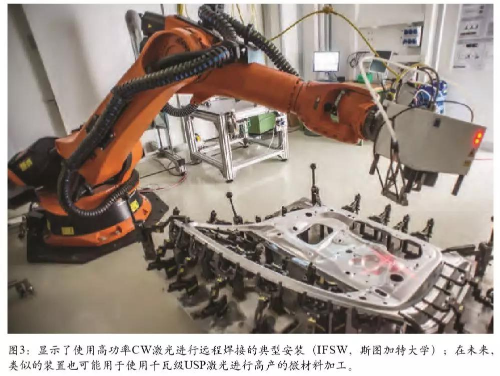 但所有這一切都將改變。由于USP激光器的平均輸出功率剛剛進(jìn)入數(shù)千瓦級(jí)(見圖 2),這種類型激光器 的使用目前正在擴(kuò)展到傳統(tǒng)的微加工實(shí)驗(yàn)室之外,并且確實(shí)征服了大規(guī)模的制造應(yīng)用。因此,我們將看到更多基于激光的高精度超快材料加工在大型生產(chǎn)機(jī)器上進(jìn)行,初看起來與我們用于切割或焊接等的經(jīng)典宏觀應(yīng)用非常相似(見圖3)。因此,在同一臺(tái)機(jī)器上執(zhí)行所有已知激光材料加工應(yīng)用的想法很自然。但這可以用同一臺(tái)激光器實(shí)現(xiàn)嗎?
