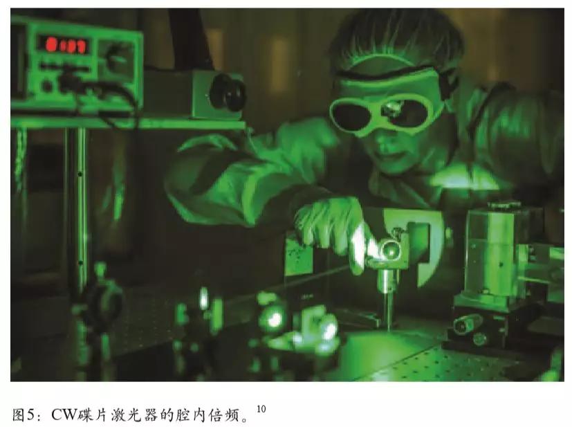 將當(dāng)前大功率USP激光器的常用架構(gòu)再往前推幾步,我們可能實(shí)現(xiàn)一種激光器,可以提供幾千瓦的平均輸出功率,可以在不同的運(yùn)行模式之間切換,從輸出超短脈沖到常見的 CW 輻射。此外,可以從最先進(jìn)的激光器獲得 高功率或高強(qiáng)度,也使得通過非線性光學(xué)效應(yīng)的頻率轉(zhuǎn)換越來越有吸引力和有效(見圖5)。因此,我們不僅能夠在不同的脈沖持續(xù)時(shí)間和 CW 運(yùn)行之間切換,而且能夠在不同波長(zhǎng)之間切換。這將最終滿足可以使用同一臺(tái)激光器來實(shí)現(xiàn)大多數(shù)已知的材料加工應(yīng)用的期望。