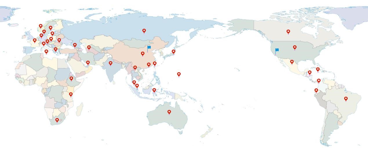 智能汽車、高精度地圖的爆炸性發(fā)展給激光雷達(dá)這一關(guān)鍵核心技術(shù)在全球范圍內(nèi)帶來了巨大的市場機(jī)遇。眾多國內(nèi)廠商也紛紛加入,成為無人駕駛這股浪潮的弄潮兒。然而,他們與其他領(lǐng)域的公司類似,雖然“中國制造”能力日益強大,但是如何擺脫傳統(tǒng)的負(fù)面形象、立足于國際市場并擴(kuò)大我國在相關(guān)領(lǐng)域的國際影響力已成為大家所面臨的共同困境。在眾多本土激光雷達(dá)公司中,北京數(shù)字綠土科技有限公司(以下簡稱“數(shù)字綠土”)獨辟蹊徑,憑借著其過硬的軟硬件研發(fā)實力成為激光雷達(dá)領(lǐng)域全球知名企業(yè)之一。其產(chǎn)品已遠(yuǎn)銷美國、加拿大、澳大利亞、法國、意大利、日本、巴西、波蘭、新加坡等40余個國家和地區(qū)(圖1)。