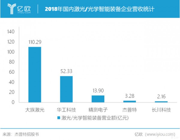 數(shù)據(jù)表明,2018年杰普特的激光/光學智能裝備業(yè)務營收為2.16億元,相比大族激光110.29億元、華工科技52.33億元、精測電子13.90億元的營收額,該項業(yè)務仍需加碼助力,才能趕超同行搶奪市場份額。