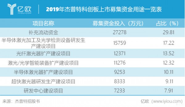 根據(jù)杰普特的招股書顯示,本次募集的資金29.81%將用于補充流動資金,另外七成資金將用于激光/光學智能裝備和激光器項目生產(chǎn)、擴產(chǎn)以及研發(fā)中心的建設。這樣的打法,也說明了此次杰普特抱著“壯士斷腕”的決心,勢必要加強自身核心技術的研發(fā),實現(xiàn)產(chǎn)能的再次激增。