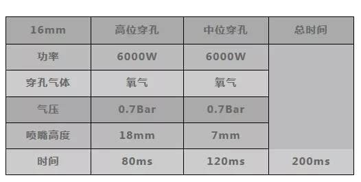 下表為快速穿孔測(cè)試詳細(xì)穿孔參數(shù)