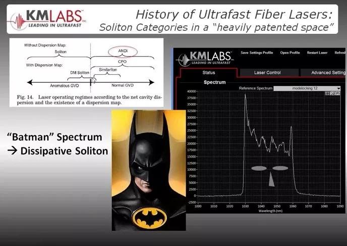 • KMLabs Y-Fi?激光器是最早的商業(yè)化耗散孤子光纖激光器,它基于一種全正常色散鎖模專利技術(shù),由于光譜形似蝙蝠俠,因此也被稱為Batman Spectrum。