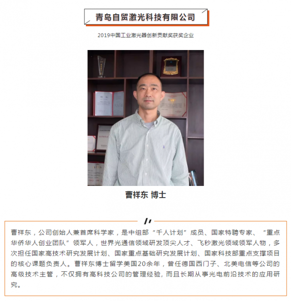 今年,自貿(mào)激光憑借“高功率高能量飛秒激光器TCR-FS-1030-150”產(chǎn)品榮獲了LMN Awards 2019中國激光行業(yè)貢獻獎-中國工業(yè)激光器創(chuàng)新貢獻獎獎項。