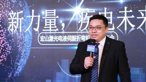 12月20日,宏山激光新力量,疾電未來(lái)——電液伺服折彎?rùn)C(jī)新品發(fā)布會(huì)在宏山激光總部召開(kāi),活動(dòng)正式發(fā)布了HC1103電液伺服折彎?rùn)C(jī),帶