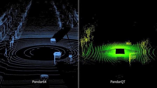 圖為:Pandar64和PandarQT對(duì)近距障礙物識(shí)別時(shí)的對(duì)比。