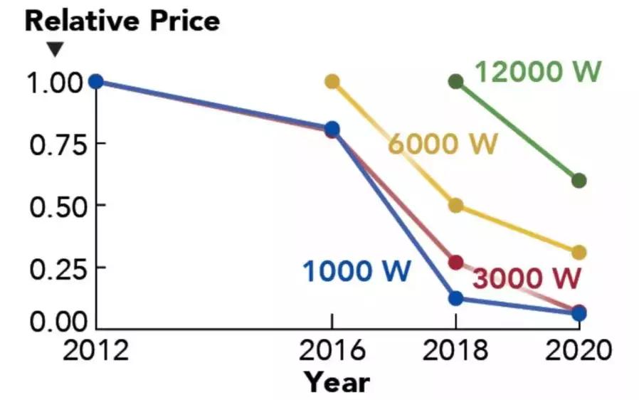 Bos Photonics咨詢公司BO GU博士認為,光纖激光器現(xiàn)已成為中國材料加工的主要激光源,占據(jù)了60%以上的激光加工市場。價格下降的積極影響是迅速受到最終用戶歡迎,激光應用迅速普及,尤其是在金屬切割、打標和清潔方面。2018年,中國銷售了30,000臺中功率激光切割系統(tǒng)和6000臺大功率激光切割系統(tǒng),以及13萬臺激光刻印機。但是另一個值得注意的領(lǐng)域是主要由3C應用驅(qū)動的紫外(UV)激光器和超快激光器的快速增長。