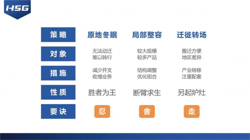 其次,面對疫情,企業(yè)應(yīng)采取有效的應(yīng)對措施。這方面蘇總也給出了三個策略:第一,原地冬眠。針對無法動遷,難以轉(zhuǎn)行的企業(yè),應(yīng)以“活下來”為目標(biāo),盡量減少企業(yè)開支,收縮業(yè)務(wù),讓自己熬過寒冬,成為市場和行業(yè)的“剩者”,只有剩下來,才有可能勝者為王;第二,局部整容。對于企業(yè)規(guī)模較大,產(chǎn)品線較多的企業(yè),可通過結(jié)構(gòu)調(diào)整、組合優(yōu)化的方式,斷臂求生;第三,遷徙轉(zhuǎn)場。對于搬遷方便和存在一定地區(qū)差異的企業(yè),可實施產(chǎn)業(yè)轉(zhuǎn)移,迅速另起爐灶,以避免企業(yè)產(chǎn)生更大的損失。