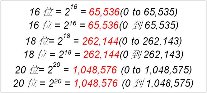 表1:DAC分辨率轉(zhuǎn)換為代碼數(shù)的計算(16到20位)