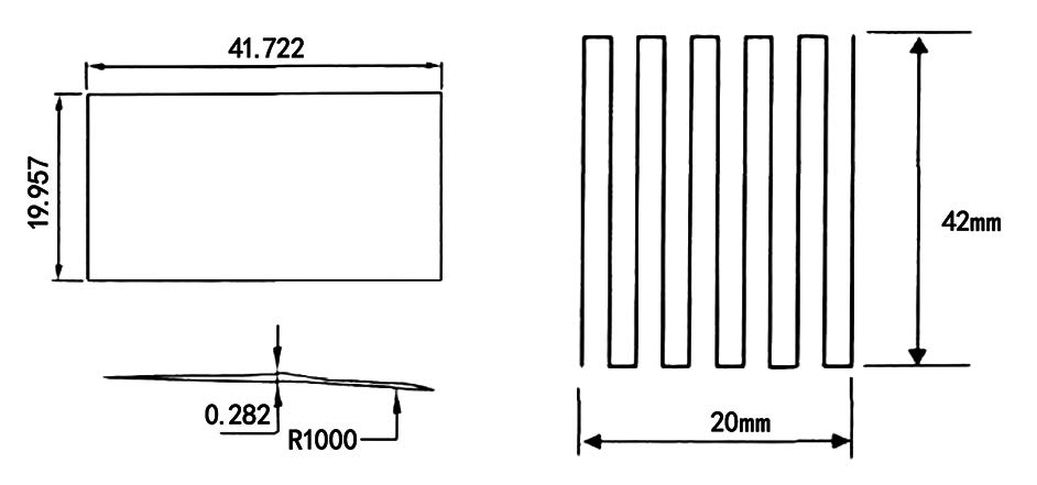 從第一破損區(qū)的工程圖可以看出該區(qū)域長(zhǎng)度約為42mm,寬度約為 20mm,如圖 3 所示。雖然是曲面,但由于半徑達(dá)到了 1000mm,可以簡(jiǎn)化為平面處理。通過(guò)一些基礎(chǔ)實(shí)驗(yàn)得到的經(jīng)驗(yàn)來(lái)看,鋁合金激光熔覆功率 800W,掃描速度 5mm/s,掃描間距 2mm 時(shí)效果較好,此時(shí)的熔覆層高度約為 0.5mm,大于破損區(qū)域的 0.282mm,所以只需要熔覆一層即可,本次激光熔覆的編程,如圖 3 所示。長(zhǎng)度方向上共有 11 道。