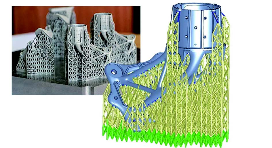 Murphree 解釋說,無支撐打印具有多個優(yōu)點。后處理成本降低了——這通常占總單價的很大一部分。同時,也不需要進行與支撐結構相關的重新設計,從而使零件從傳統(tǒng)制造過渡到增材制造的過程變得更加容易。最重要的是,設計人員可以通過無支撐的打印方式獲得更大的自由度,從而使一些以前無法制造的結構,例如內部流體通道和熱交換器的制造成為可能。