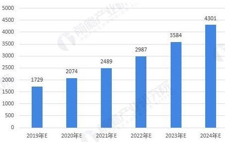 圖表:2019-2024年中國激光市場規(guī)模預(yù)測(單位:億元)