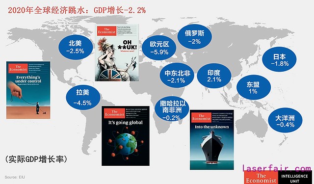 在如此嚴(yán)峻的全球疫情和宏觀經(jīng)濟(jì)形勢下,《經(jīng)濟(jì)學(xué)人》智庫展望2020年全球經(jīng)濟(jì)前景預(yù)計,2020年全球的GDP會收縮2.2%,除了亞洲的個別國家如中國、印度等,其他國家或?qū)⒍际秦?fù)增長。