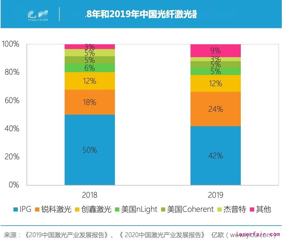 2018年和2019年中國光纖激光器銷售份額