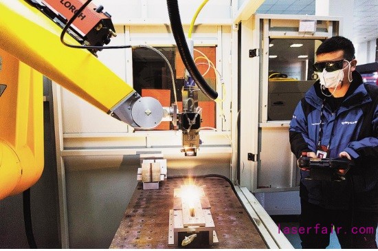 他走向一臺1.2萬瓦的光纖激光器,準(zhǔn)備焊鋼。激光游走的地方,瞬間溫度接近5000℃,表面熔化后,兩塊堅(jiān)硬的碳鋼,已熔為一體。他說,去年,銳科研發(fā)的1500瓦手持激光焊接設(shè)備,剛試水市場就賣了好幾千臺。
