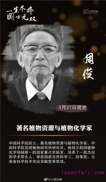 3月27日12時39分,中國科學(xué)院院士、著名植物資源與植物化學(xué)家周俊院士因病醫(yī)治無效,在昆明逝世,享年89歲。周俊院士率先在國內(nèi)系統(tǒng)開展植物配糖體和植物環(huán)肽研究,創(chuàng)立了我國植物化學(xué)領(lǐng)域唯一的國家重點實驗室,培養(yǎng)了一批學(xué)術(shù)帶頭人。