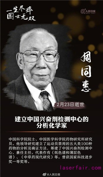 2月23日,中國共產(chǎn)黨黨員、中國科學(xué)院院士、著名分析化學(xué)家、中國醫(yī)學(xué)科學(xué)院藥物研究所研究員周同惠因病醫(yī)治無效在北京逝世,享年95歲。 周同惠長期從事藥物分析方法學(xué)的基礎(chǔ)研究,開展中草藥有效成分分析方法的研究、藥物代謝及代謝產(chǎn)物的分析與鑒定方法的研究,領(lǐng)導(dǎo)研究建立了運動員禁用的五大類100種藥物的分析及確證方法,創(chuàng)建興奮劑檢測中心,使我國成為亞運會歷史上第一個由承辦國獨立進行興奮劑檢測的國家。他組建國家藥物及代謝產(chǎn)物分析研究中心,為發(fā)展我國自己的創(chuàng)新藥物發(fā)揮了重要作用。